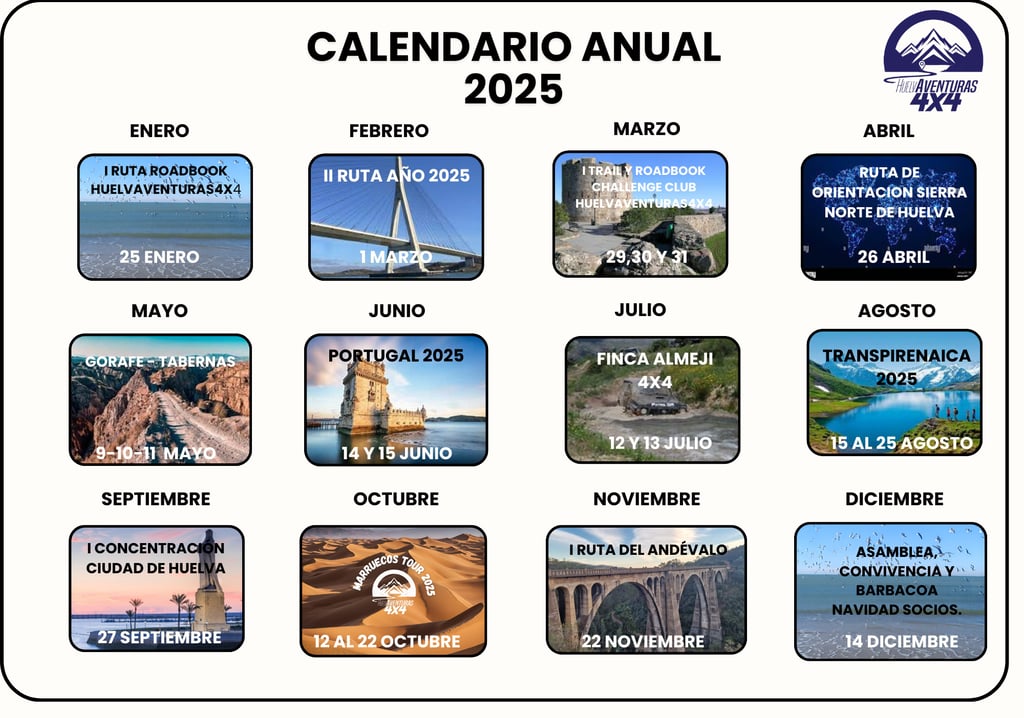 Calendario de Actividades 2025 Club HuelvAventuras4x4