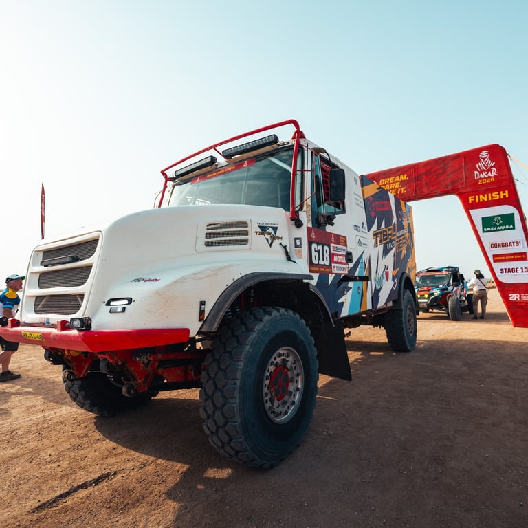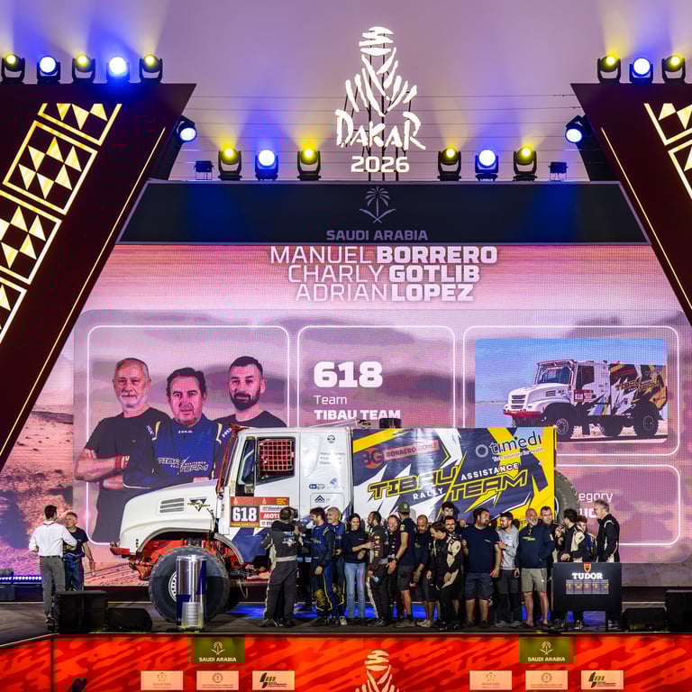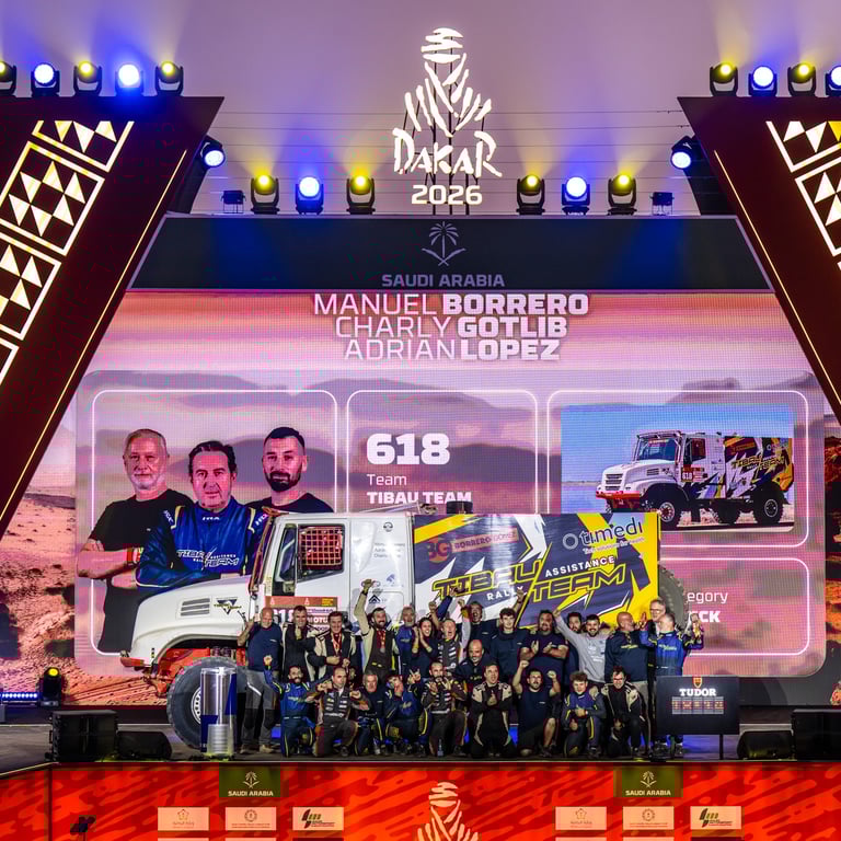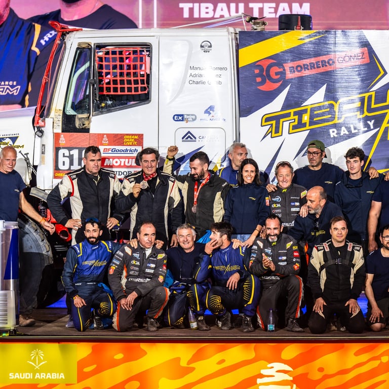 Hoy también es un día para destacar un logro clave: todos los camiones del Tibau Team han conseguido llegar a meta, cumpliendo así uno de los objetivos principales que el equipo se marcó desde el inicio del Dakar: