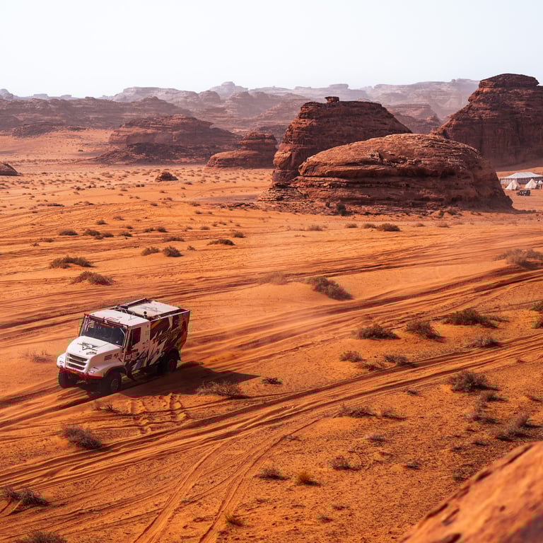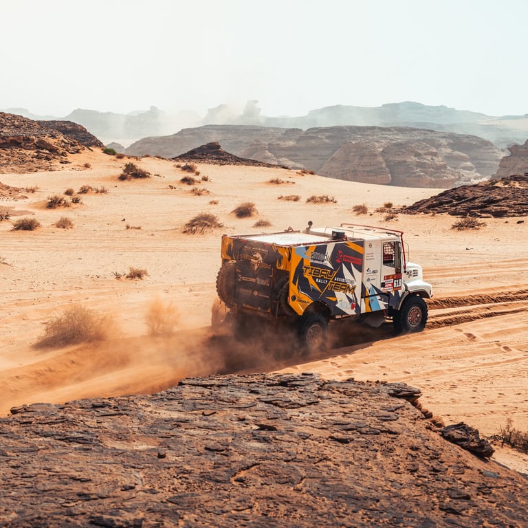 Manolo Borrero, con el dorsal 618, ha completado una etapa especialmente complicada en la que el objetivo principal ha sido sobrevivir y llegar al vivac. La jornada ha sido larguísima también en lo físico, con cerca de 10 horas dentro del camión, en un día donde la resistencia, la concentración y el esfuerzo corporal han sido determinantes.