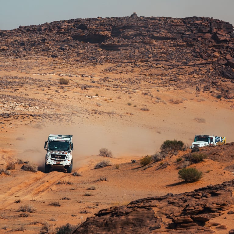 La etapa de hoy ha sido una de las más duras y largas de lo que llevamos de Dakar, con 736 kilómetros totales, repartidos en 315 km de enlace y más de 400 km de especial. Una jornada maratoniana marcada por un terreno muy pedregoso y extremadamente exigente, que ha castigado duramente tanto a las mecánicas como a las tripulaciones.